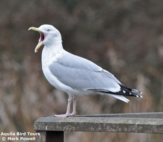 As I was not due back in work until 7th Dad, Al and I decided on a day out to Anglesey and the North Wales Coast line around Llanfaifechan. A total of 76 Species were seen. The day began at first light in the Fish Quay Holyhead where all the usual suspects were seen including 3 Great Northern Diver and Black Guillemot. We had one very unusual sighting there - a pair of Chough feeding on the tall wall covered in grass. Other birds of note on the Principality were Long-tailed Duck, Merlin, Peregrine Falcon (male), 200 Brent Geese, Slavonian Grebe and a flock of 11 Grey Plover.
